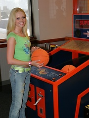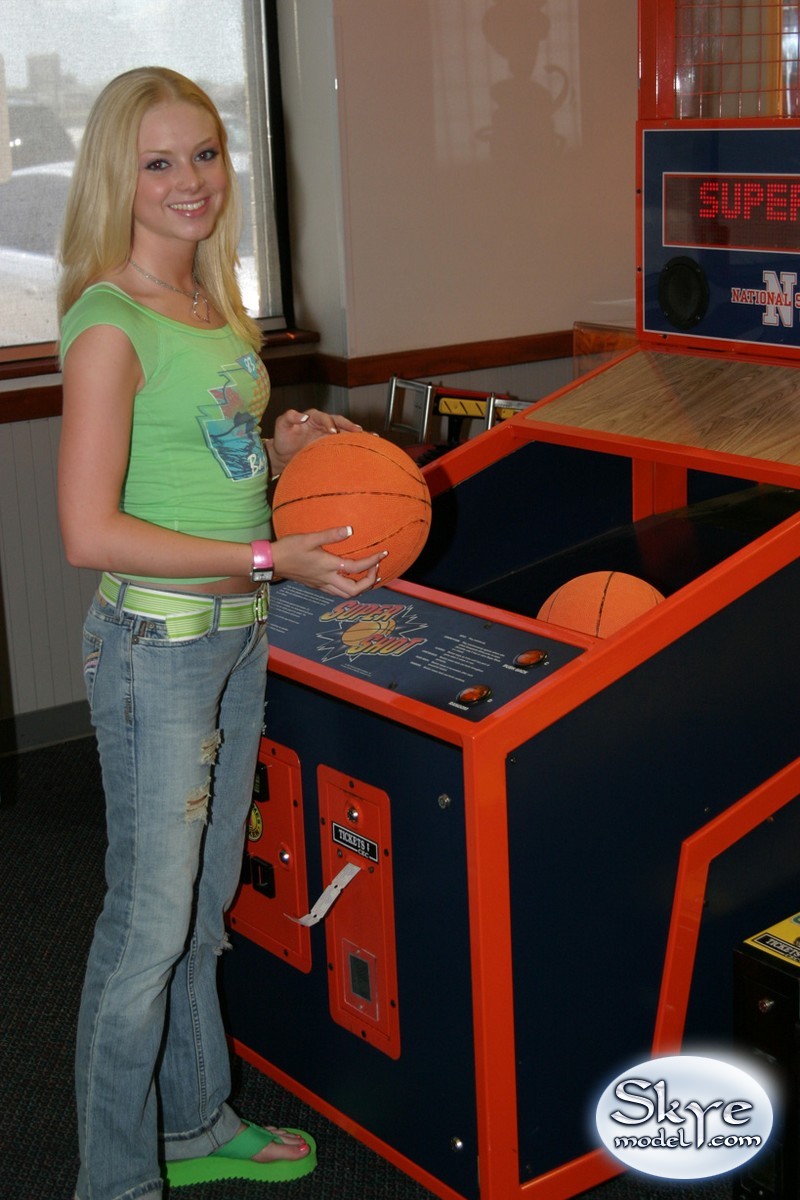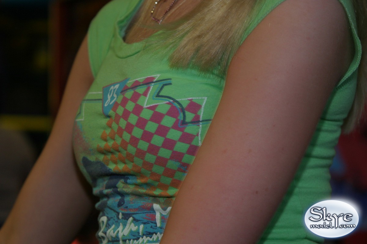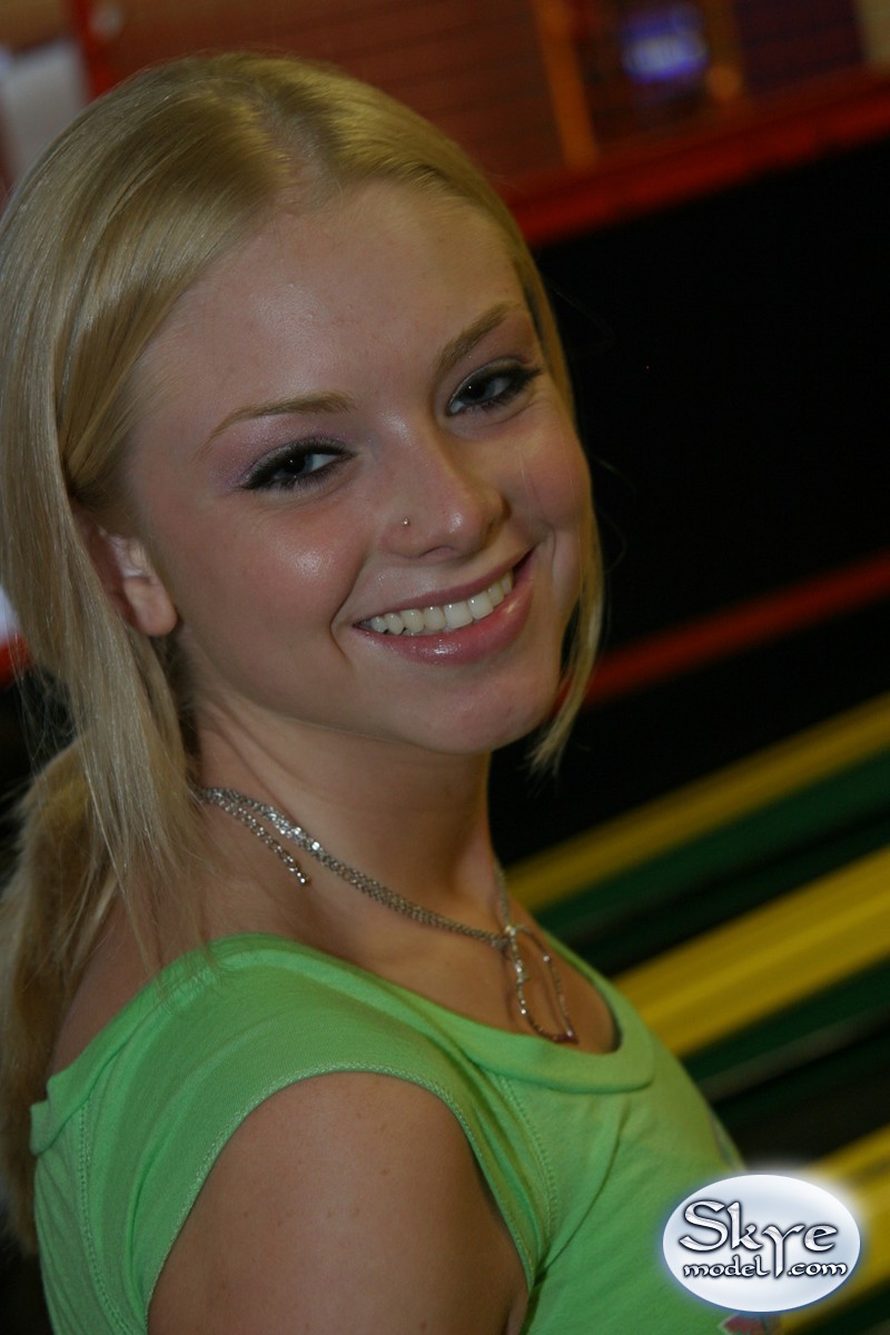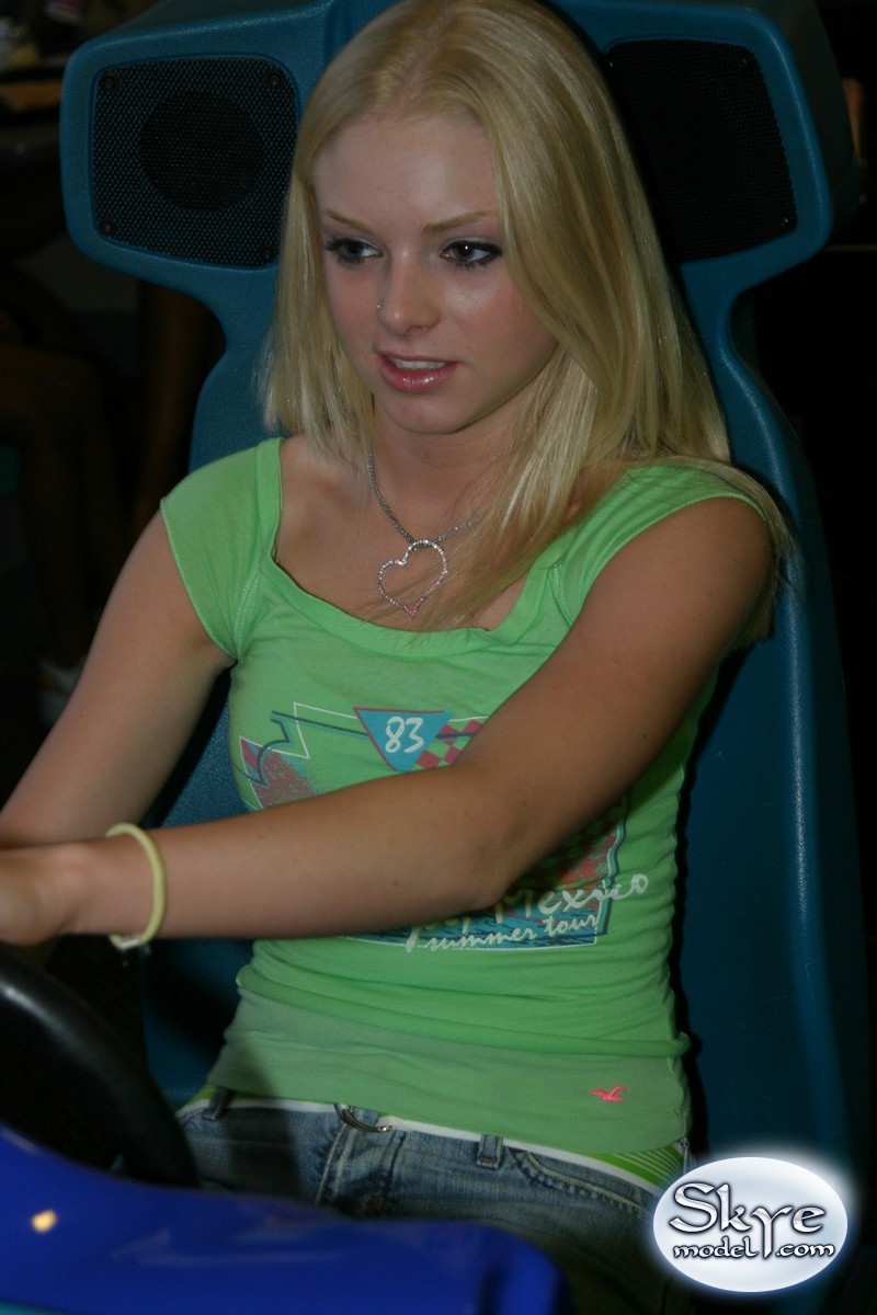 MPX Girls -> Skye Model: Petite blonde Skye Model is out having fun in a tight top and jeans