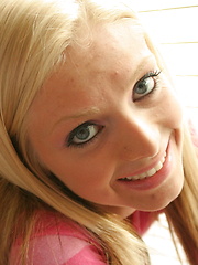 MPX Girls -> Skye Model: Teasing blonde teen Skye shows off her perky tits as she strips out of her pink striped shirt