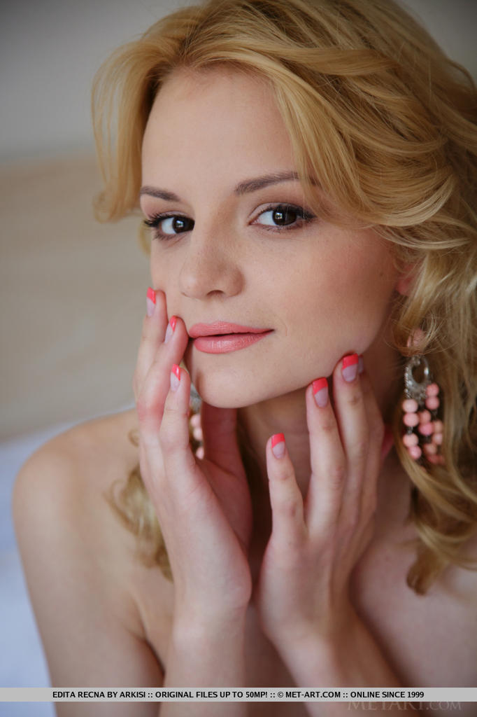 MPX Girls -> Met Art: Wearing a sexy pink nightwear matching lingerie, Edita Recna poses enthusiastically on the bed showcasing her slender body with glowing pale skin and spreading her sexy legs, baring her smooth, pink pussy.