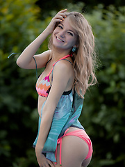 MPX Girls -> Met Art: Yani A slowly strips off her pink bikini to take a naked dip in the pool. Feast your eyes on her lovely tan lines.