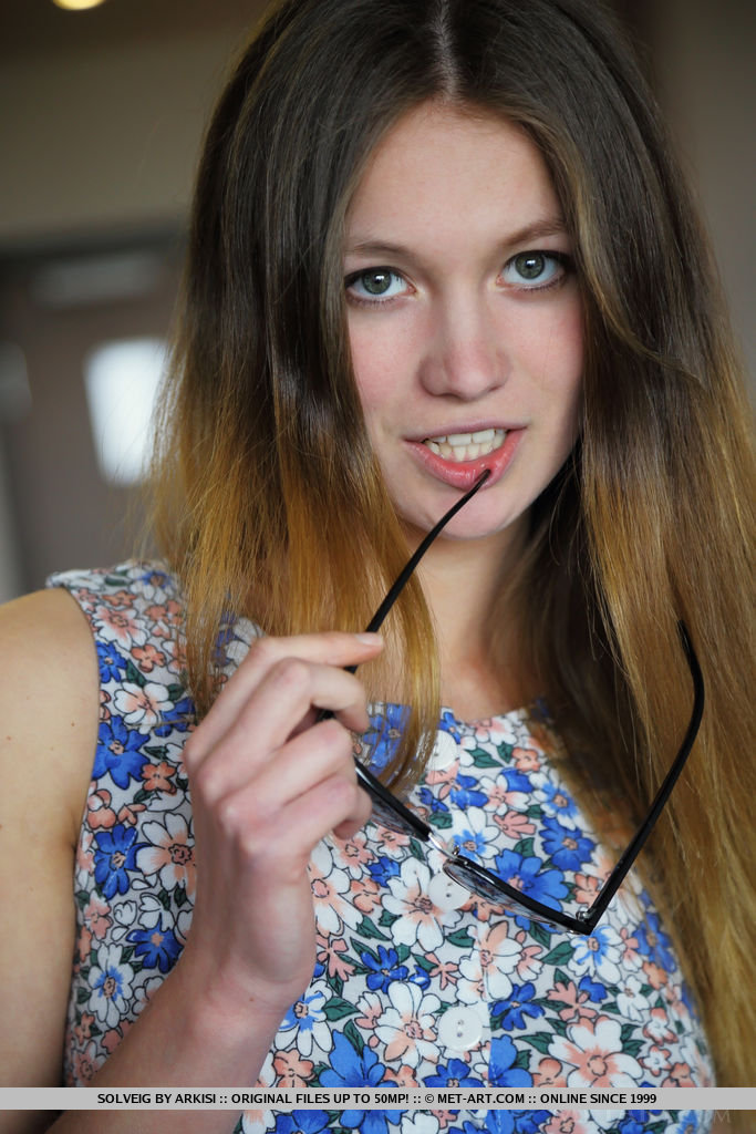 MPX Girls -> Met Art: Wearing a blue floral tank top, cute pink panty, and sunglasses, Solveig portrays a fun and naughty teen who loves teasing in front of the camera.