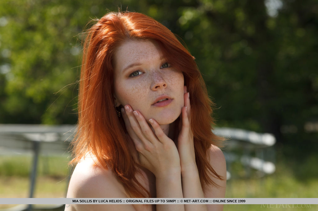 MPX Girls -> Met Art: A dip-dyed blue sarong wrapped around Mia Sollis' curvy body helps bring out her striking red hair and gorgeous fair porcelain skin with delightfully pink and puffy bits.