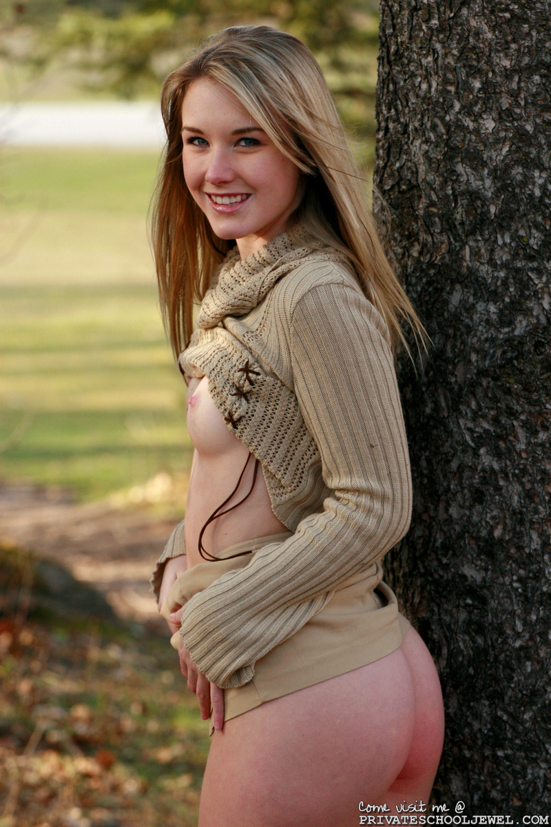 MPX Girls -> Private School Jewel: Teen beauty embraces a golden autumn outdoors naked