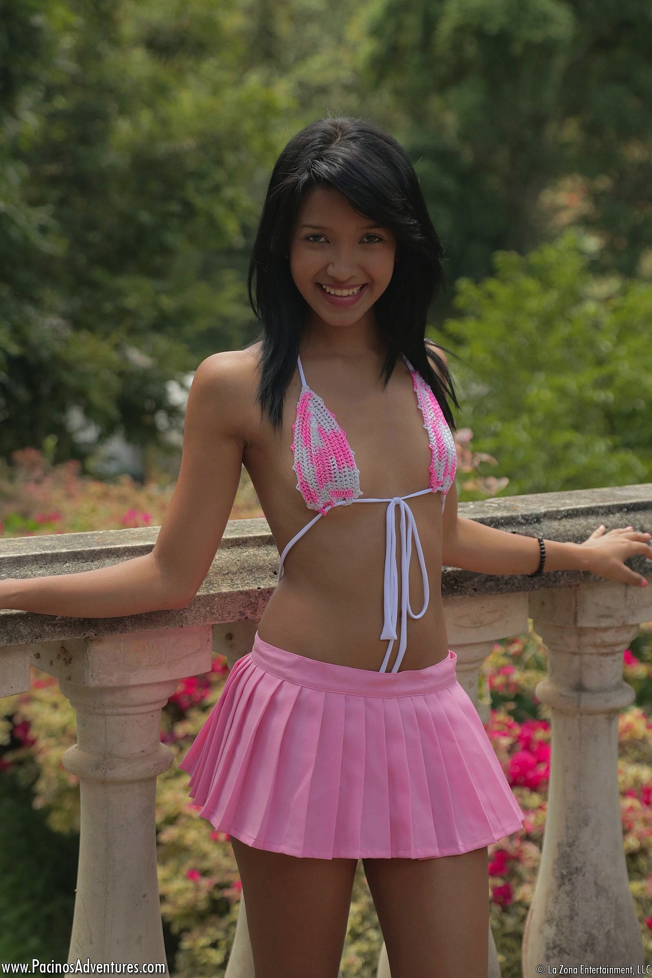MPX Girls -> Pacinos Adventures: Carol Lopez wears a string bikini and a pink mini skirt and she shakes that latina teen body gives us a hot strip show