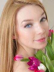 MPX Girls -> Showy Beauty: Luscious blonde doll has some sensual fun in her living room with the love of nature delicately touching her hairy pussy.