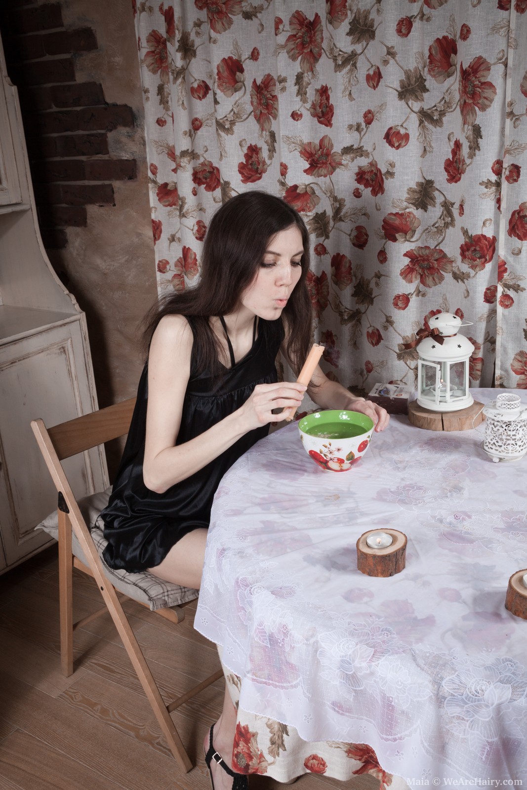 MPX Girls -> We Are Hairy: Maia strips naked on her table with a candle