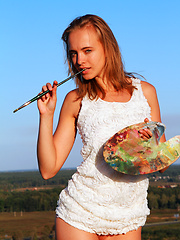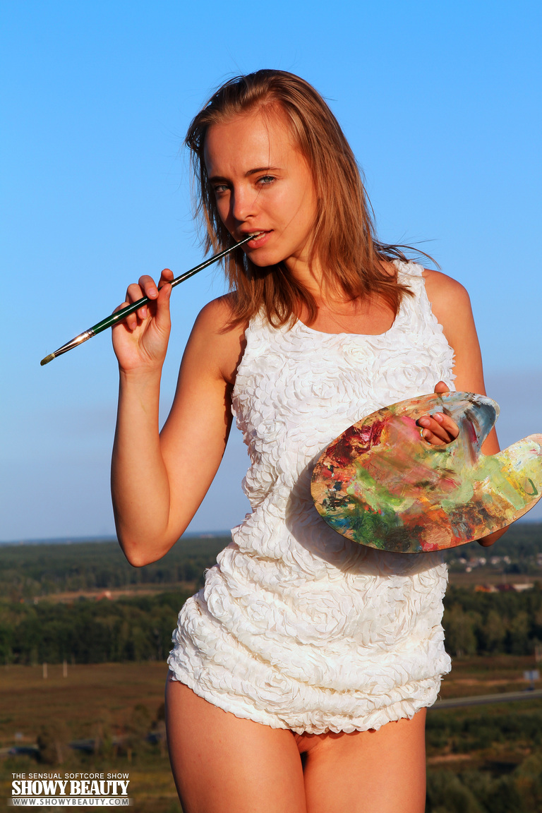 MPX Girls -> Showy Beauty: Gorgeous beauty showing tempting nude body while drawing a picture outdoors in the field.