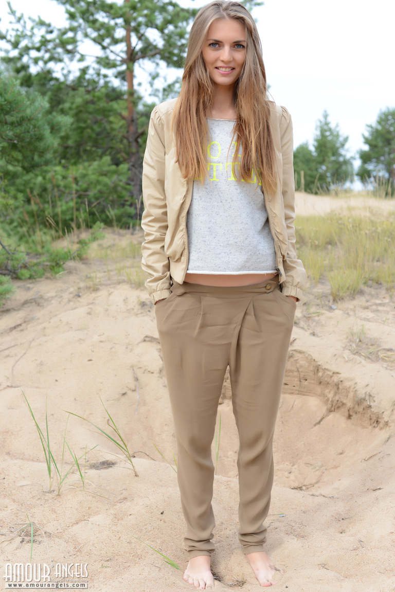 MPX Girls -> Amour Angels: Delicious teen beauty undressing and spreading her long shapely legs outdoors on the sand.
