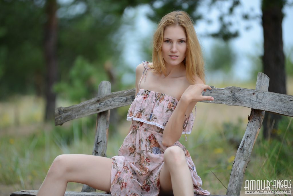 MPX Girls -> Amour Angels: Gorgeous teen chick undressing and demonstrating her juicy slim naked body on a park bench.