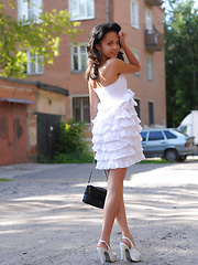 MPX Girls -> Amour Angels: Adorable dark haired teen chick demonstrating her excellent body under white dress outdoors.