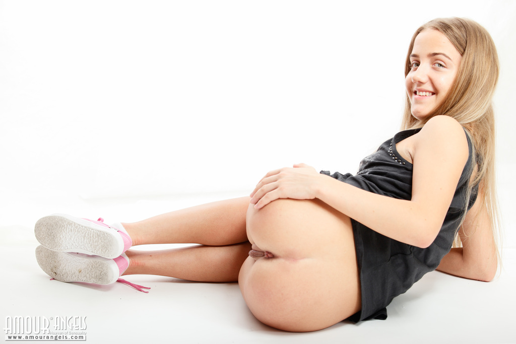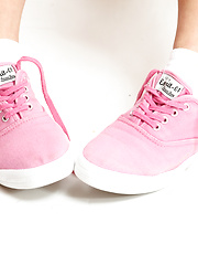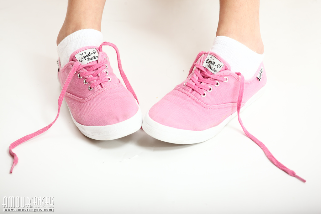 MPX Girls -> Amour Angels: Beautiful long haired teen in pink sneakers stripping and showing her sweet shaved pussy.