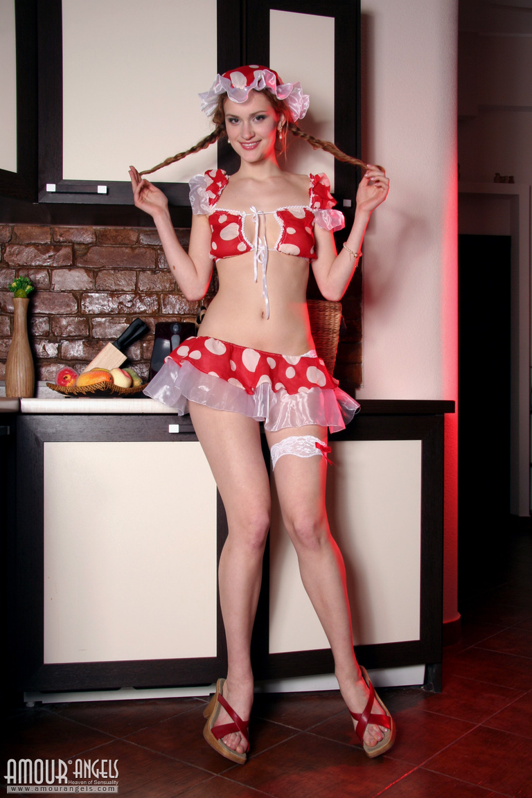 MPX Girls -> Amour Angels: Charming teen hottie stripping tempting lingerie and showing wet shaved pussy in kitchen.