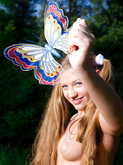 MPX Girls -> Amour Angels: Perfect long haired busty teen cutie taking off her clothes and catching a big butterfly.