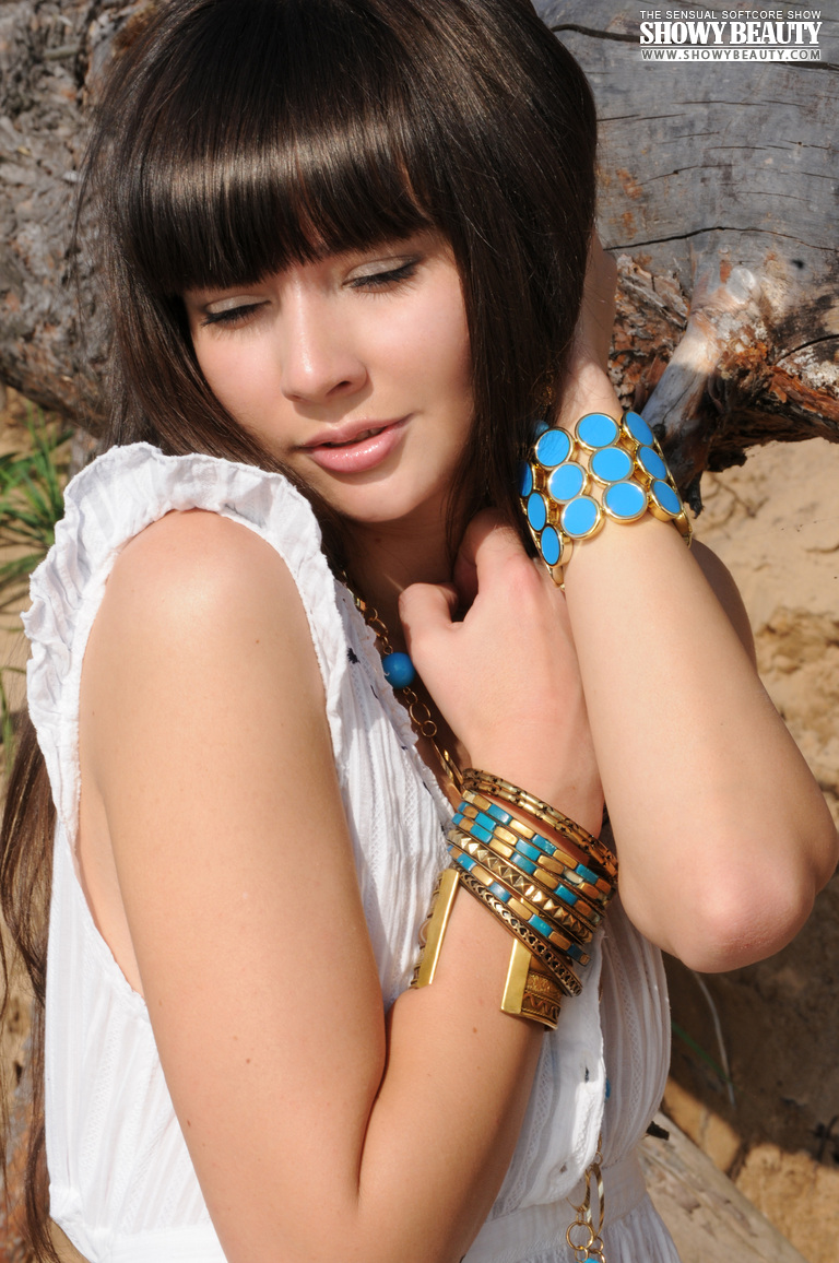 MPX Girls -> Showy Beauty: Adorable dark haired honey taking off dress and demonstrating perfect body on the seaside.