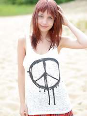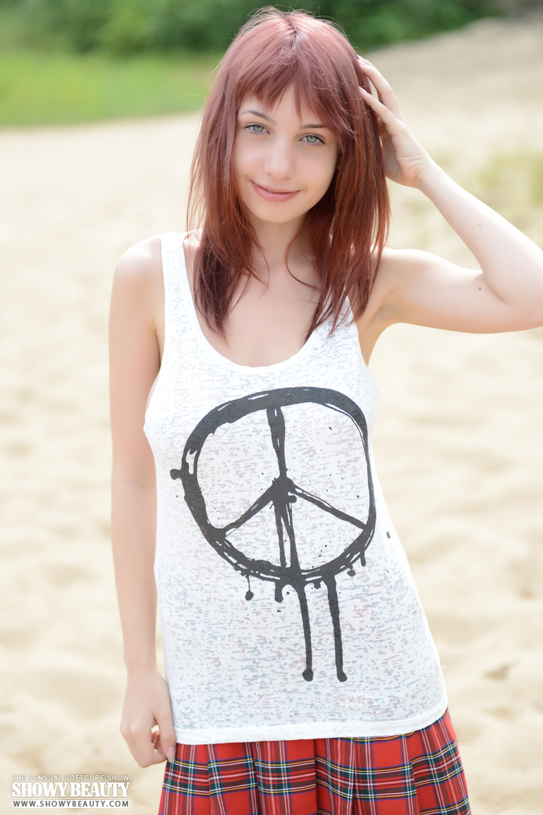 MPX Girls -> Showy Beauty: Marvelous busty redhead hippy girl stripping clothes and posing in the nude in the woods.