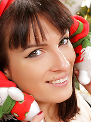 MPX Girls -> Showy Beauty: Amazing dark haired girl with impressive tits in red stockings posing near the New Year tree.