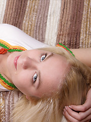 MPX Girls -> Showy Beauty: Amazing blonde sweetie undressing and showing off her tempting slender body on the couch.