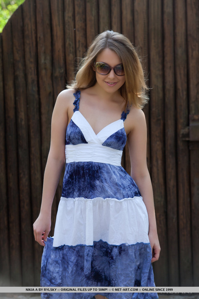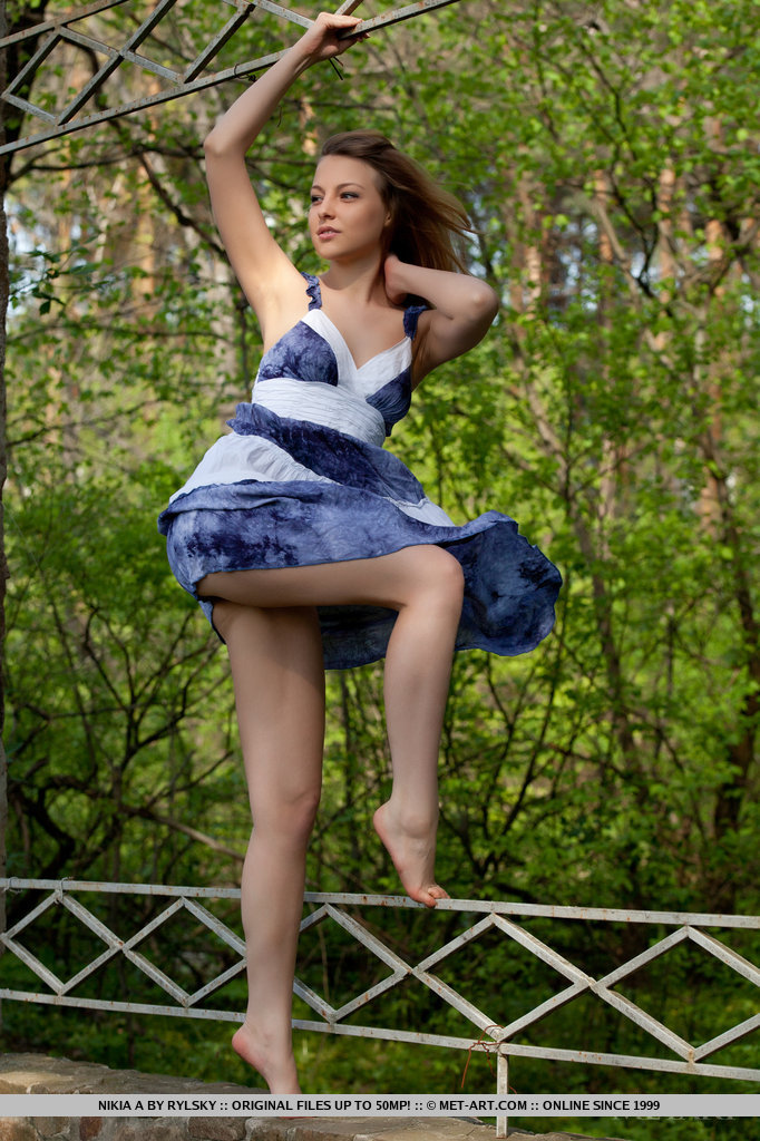 MPX Girls -> Met Art: One could easily get stunned and hypnotized in Nikia\'s sparkling, sexy eyes with seductive gaze as she strips her blue dress and poses naughtily all over the garden.