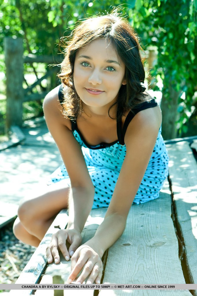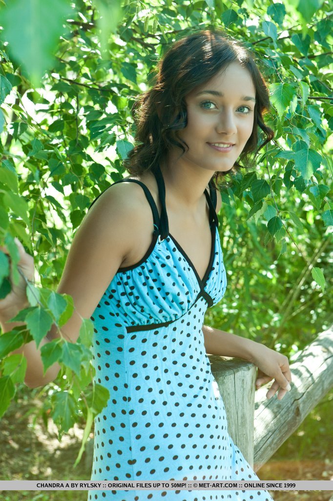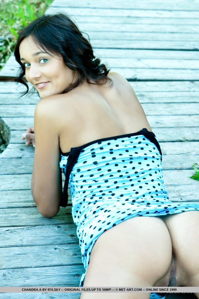 MPX Girls -> Met Art: Chandra hairy bush compliments her natural and youthful appeal, and carefree beauty as she strips her blue-dotted dress and lounge under the golden afternoon sun.