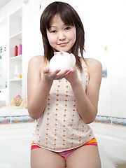 MPX Girls -> Little Brown Fucking Machine: Alicia plays with her tight hairless pussy while taking a bubble bath