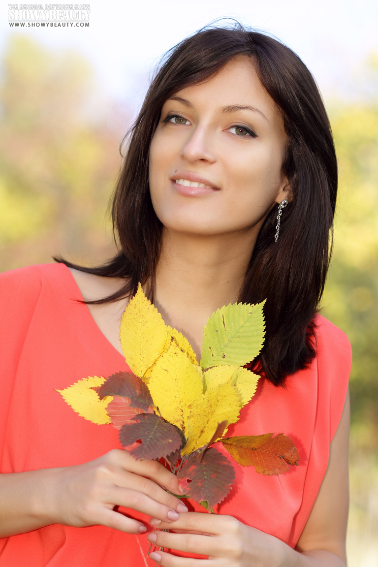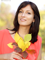 MPX Girls -> Showy Beauty: Delightful dark haired chick with lovely breasts taking off clothes outdoor on the nature.