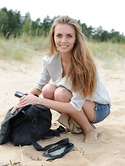 MPX Girls -> Amour Angels: Winsome long haired teen cutie taking off clothes and showing appetizing body on the shore. Girl on the seaside