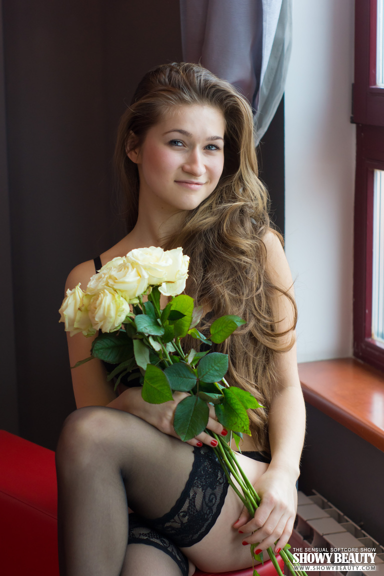 MPX Girls -> Showy Beauty: Always smiling, always showing secret look. This slender nude cutie looks amazingly good in that sexy black underwear.