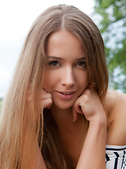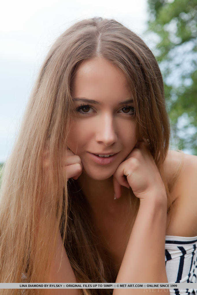 MPX Girls -> Met Art: The beautiful Lina Diamond delivers a gorgeous erotic outdoor shoot, strip teasing her black and white stripe shirt and poses on the dock by the river.