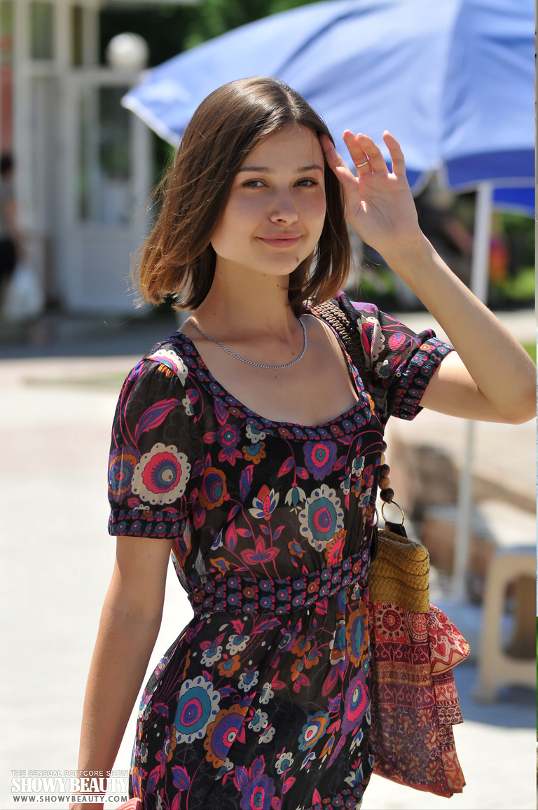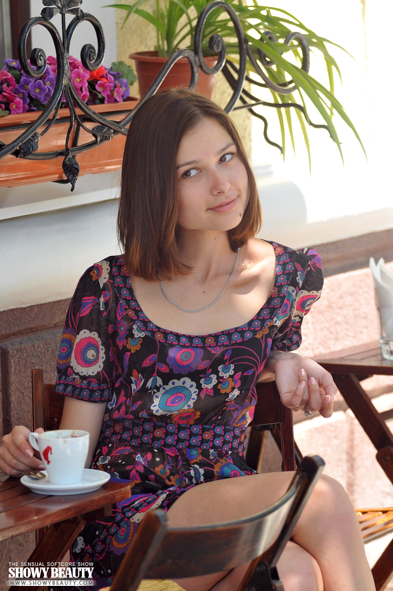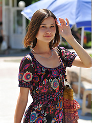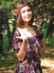 Delicious dark haired sweetie undressing and posing naked outdoor on the chair in the park.