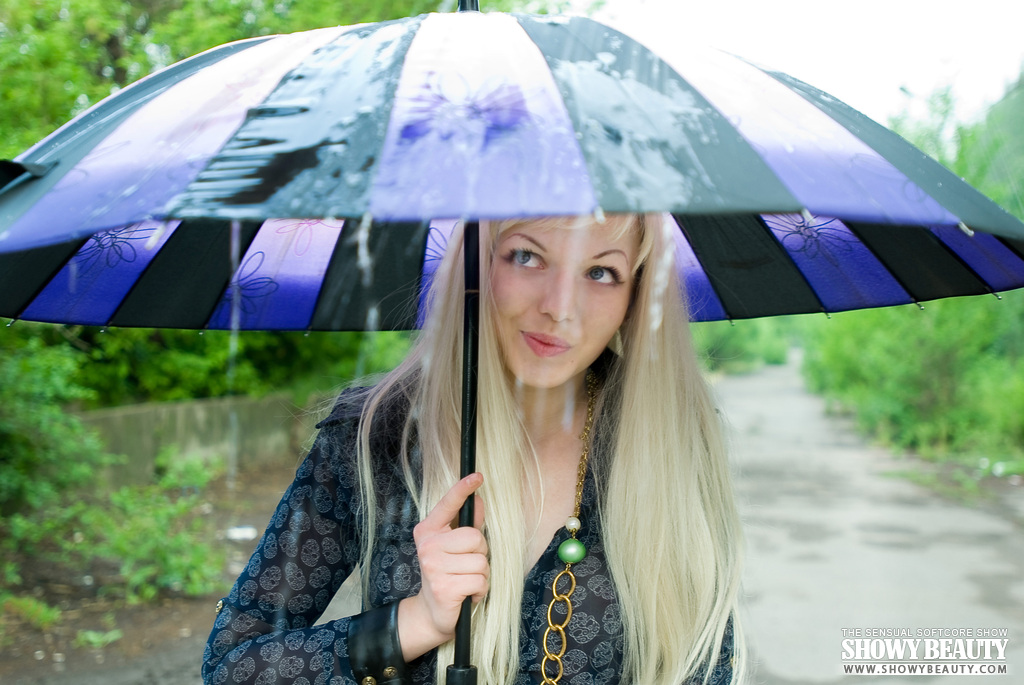 MPX Girls -> Showy Beauty: While everybody seek indoor from rain this extreme champagne girlfriend enjoy the photo session. Extra lovely outlook.